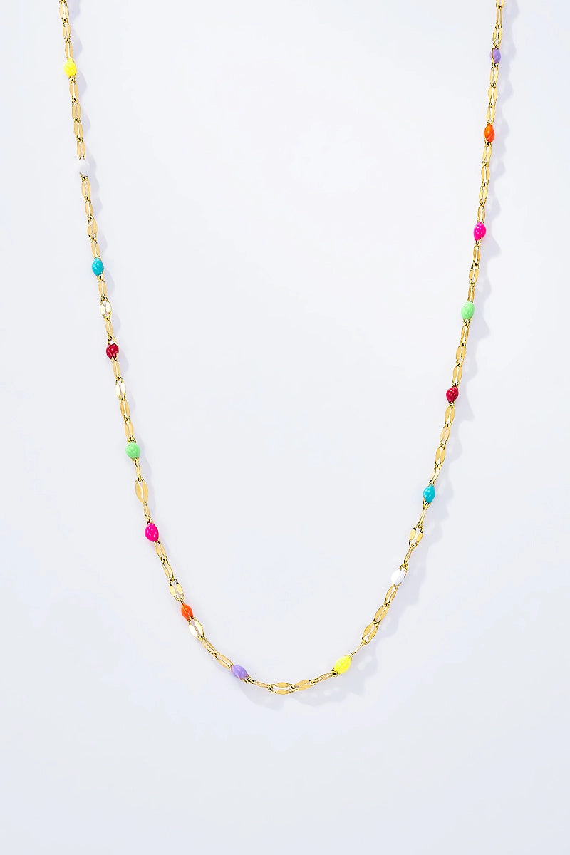Farbenfrohe Halskette aus Edelstahl, wasserfest und dunkelt nicht nach. Garantiert nickelfrei, cadmiumfrei, bleisalzfrei.